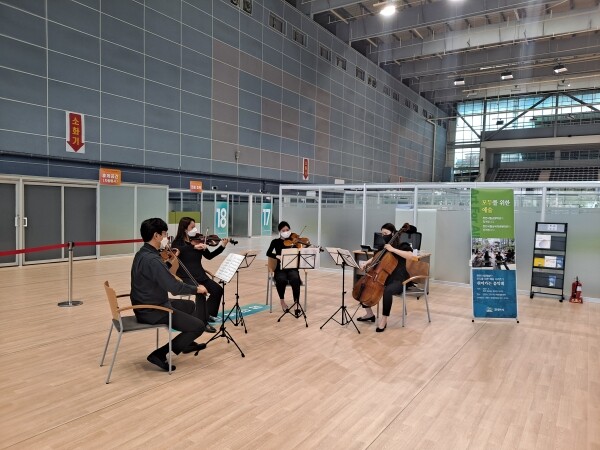 시 관계자는 “접종자 이상반응 관찰 장소와 20m 떨어진 곳에서 코로나19 방역지침을 준수한 가운데 예방접종센터 전체 업무에 방해되지 않도록 공연을 진행해 접종자들의 심신 안정에 도움을 주도록 하겠다”고 말했다.