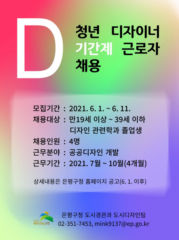 은평구 거주자를 우선 선발하며 코로나19 확산 예방을 위해 근로자는 재택근무를 실시할 예정이다.