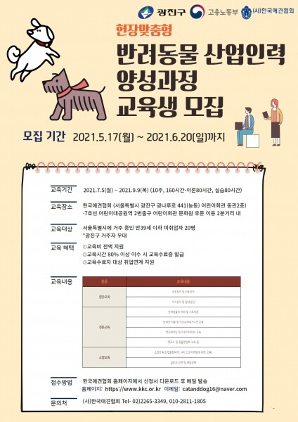 김선갑 광진구청장은 “새로 떠오르고 있는 반려동물 산업시장을 우리 청년들이 이끌어갈 수 있도록 맞춤형 인재를 양성하고자 한다”며 “누군가의 소중한 가족인 반려동물에게 양질의 서비스를 제공할 수 있도록 광진구가 인적 자원 육성에 앞장서겠다”고 말했다.