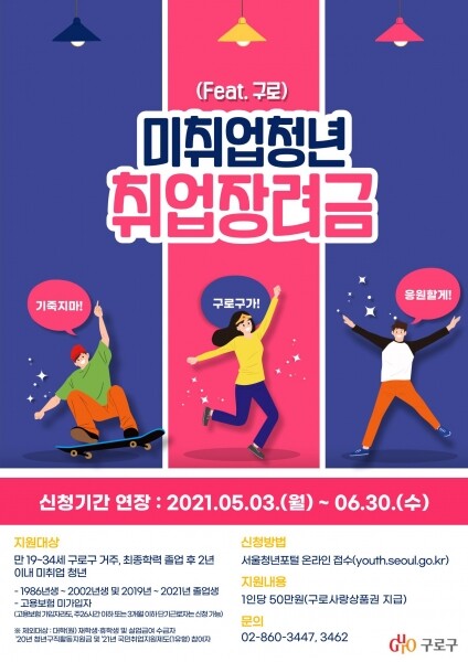 지원 대상은 구로구에 주민등록을 둔 만 19~34세 청년으로 최종학력 졸업 후 2년 이내, 고용보험에 가입되지 않은 미취업자다.