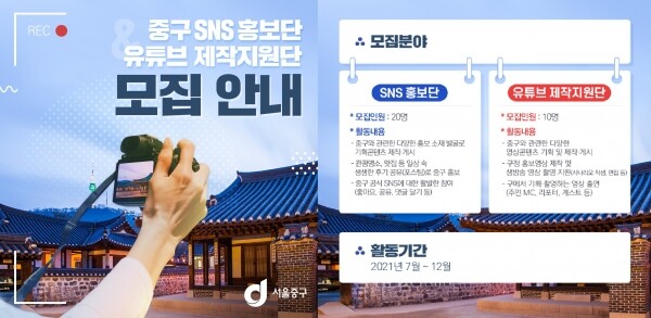 만 19세 이상의 중구민, 중구 소재 대학생, 직장인 등 중구에 관심이 많고 개인 SNS을 활발히 운영하고 있다면 누구나 지원 가능하다.