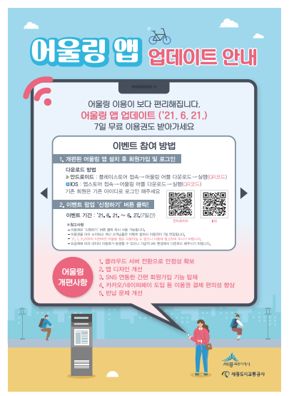 이번 어울링 앱 업데이트는 작년 7월 시와 한국전자통신연구원이 추진한 어울링 ‘디지털트윈’ 빅데이터 분석과제로 심층 분석한 결과와 이용자들로부터 접수된 불편사항들을 종합해 안정성 및 결제 편의성 향상에 초점을 맞춰 진행됐다.