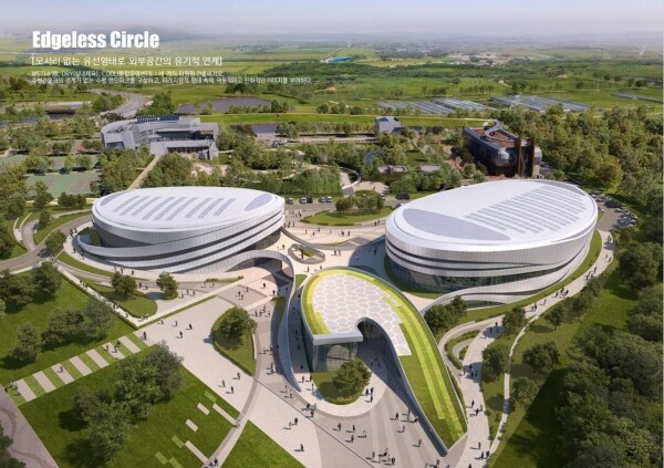 수영장과 다목적체육관·통합운영센터를 가로지르는 도로 위로는 두 건물을 연결하며 통합 로비 역할을 수행할 교량을 얹는다.