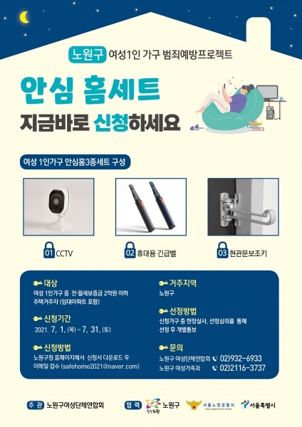 접수기한은 7.31일까지이며 안심홈세트는 80가구, 비상벨설치는 8개 점포를 선정할 계획이라고 전했다.