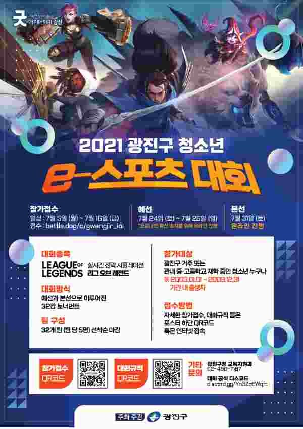 김선갑 광진구청장은 “이번 청소년 e-스포츠 대회를 통해 코로나19와 학업에 지쳐있는 청소년들이 활기를 찾길 바란다”고 말했다.