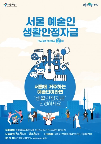서울 예술인 긴급재난지원금은 코로나19 장기화로 예술 창작 활동 위축과 경제적 위기를 맞은 문화예술인들의 지속적이고 안정적인 창작활동을 지원하는 사업이다.