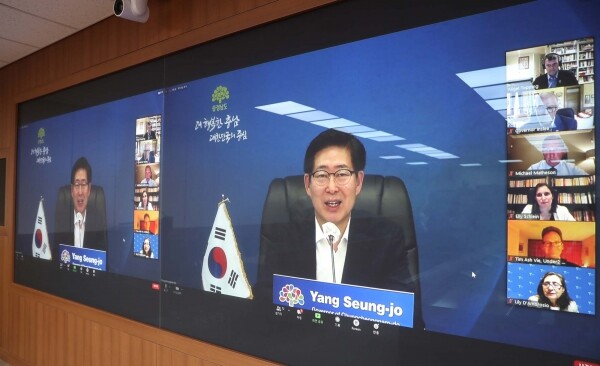 양 지사는 이와 함께 도가 오는 9월 8∼9일 개최하는 ‘2021 탈석탄·탄소중립 기후위기 선제 대응 국제컨퍼런스’를 소개하며 각국 지방정부 등의 관심과 참여를 당부했다.