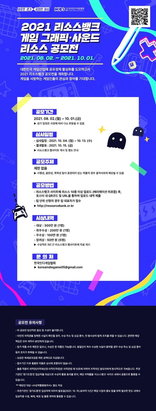 공모전을 통해 제작된 게임 자원은 리소스뱅크 사이트에 올려 무료 배포될 예정으로 대한민국 게임 개발사 및 개발자라면 누구나 사용할 수 있게 된다.