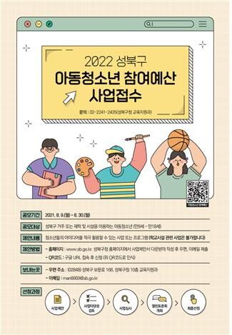 구는 지난해에 이어 올해에도 청소년의 아이디어를 실제 성북구 사업에 반영·실행하기 위한 성북구 아동·청소년 참여예산 사업을 선정, 운영하기 위한 1억원 규모의 청소년제안을 공모한다고 밝혔다.