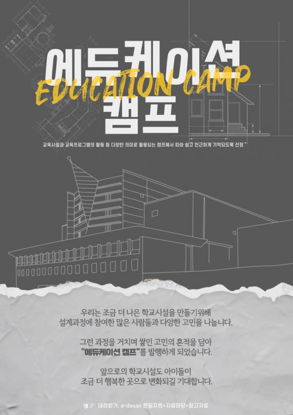 에듀케이션 캠프는 도교육청이 주관한 설계 공모 사업과 설계 자문 자료를 담은 기록지로 교육시설 설계 관련 자료를 기록지 형태로 발간한 사례는 전국 교육행정 기관 가운데 도교육청이 유일하다.