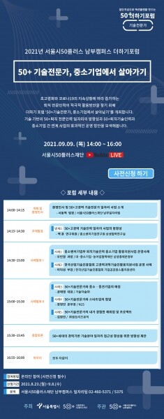 포럼은 9월 9일 오후 2시부터 4시까지 생방송으로 진행될 예정이며 참여를 원하는 사람은 23일부터 50+포털에서 사전 신청할 수 있다.