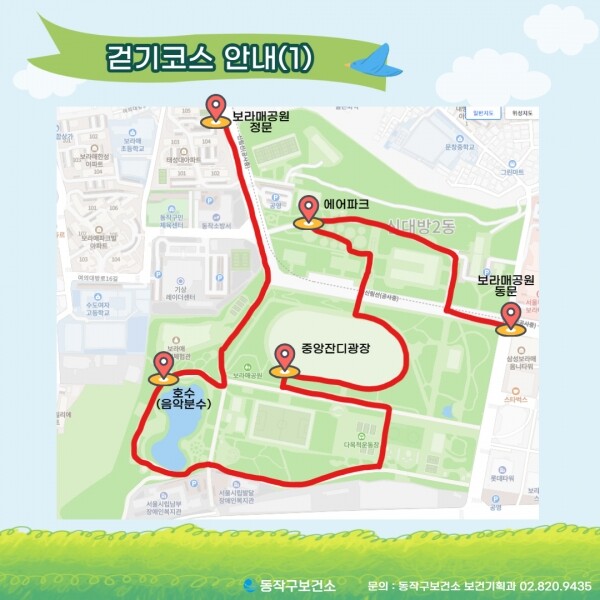 이에 구는 지역의 대표 공원을 중심으로 쉽고 지속 참여 가능한 걷기코스를 홍보하고 이벤트를 개최하기 위해 ‘보라매공원 따라 나혼자 걷기’를 추진하기로 했다.