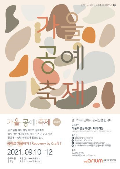 축제 기간 서울여성공예센터에서는 공예 무인마켓 ‘100개의 공예상점’ 시민참여 ‘생활창작 프로그램’ 공예창업가와 인플루언서를 직접 만나는 ‘공예창업스토리’ 등이 이어진다.