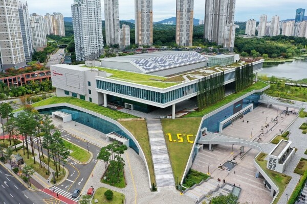 수원시는 수원컨벤션센터 외부 회의장 출입 계단 옆에 꽃으로 ‘1.5℃’라는 글자를 새겨뒀다.