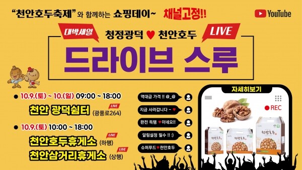 축제 첫날인 9일 광덕쉼터에서 개최되는 개장식은 천안호두휴게소 판매현장과 이원 생중계를 통해 시민들이 개장식과 판매현장을 생생하게 볼 수 있도록 마련한다.
