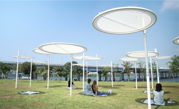 그늘막 ‘구름막’은 여의도 한강공원 멀티프라자에 군집 형태로 15개가 설치됐다.