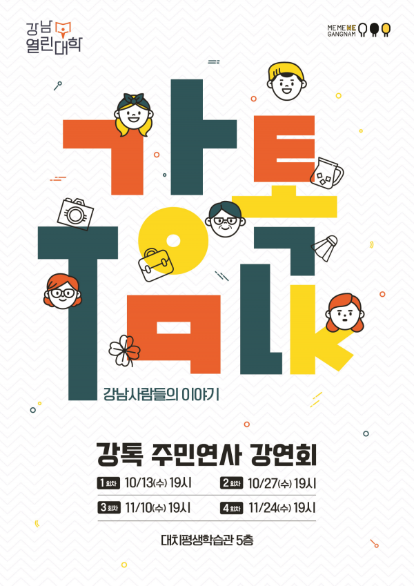 ‘강톡’은 강남과 대화를 합성한 표현으로 강남구민 누구나 강연자로 나서 제시된 주제에 맞춰 이야기할 수 있는 프로그램이다.