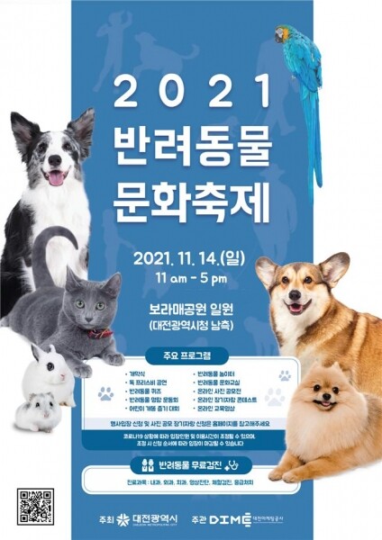 대전시 박익규 농생명정책과장은 “이번 축제를 통해 성숙한 반려동물 문화가 정착되기를 기대한다”며 “코로나19로 지친 많은 시민들과 반려동물이 축제에 참가해 즐거운 시간을 보내시길 바란다”고 말했다.